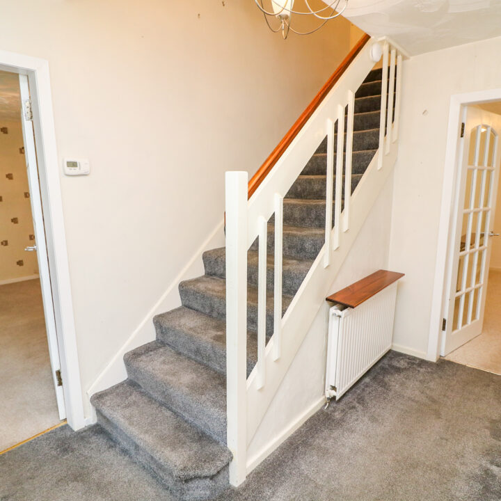 Offering versatile and flexible accommodation formed over two levels, access is through a welcoming hall leading to a well-proportioned lounge with ample space for freestanding furniture and picture window allowing woodland views. The breakfasting sized kitchen is complete with and array of base and wall mounted units with contrasting worktops and a rear hall with storage provides access to the rear garden. The downstairs bedroom is of a generous size and could easily be utilised as a further public room if required. Completing the ground floor accommodation is a shower room with white suite and walk-in shower cubicle.