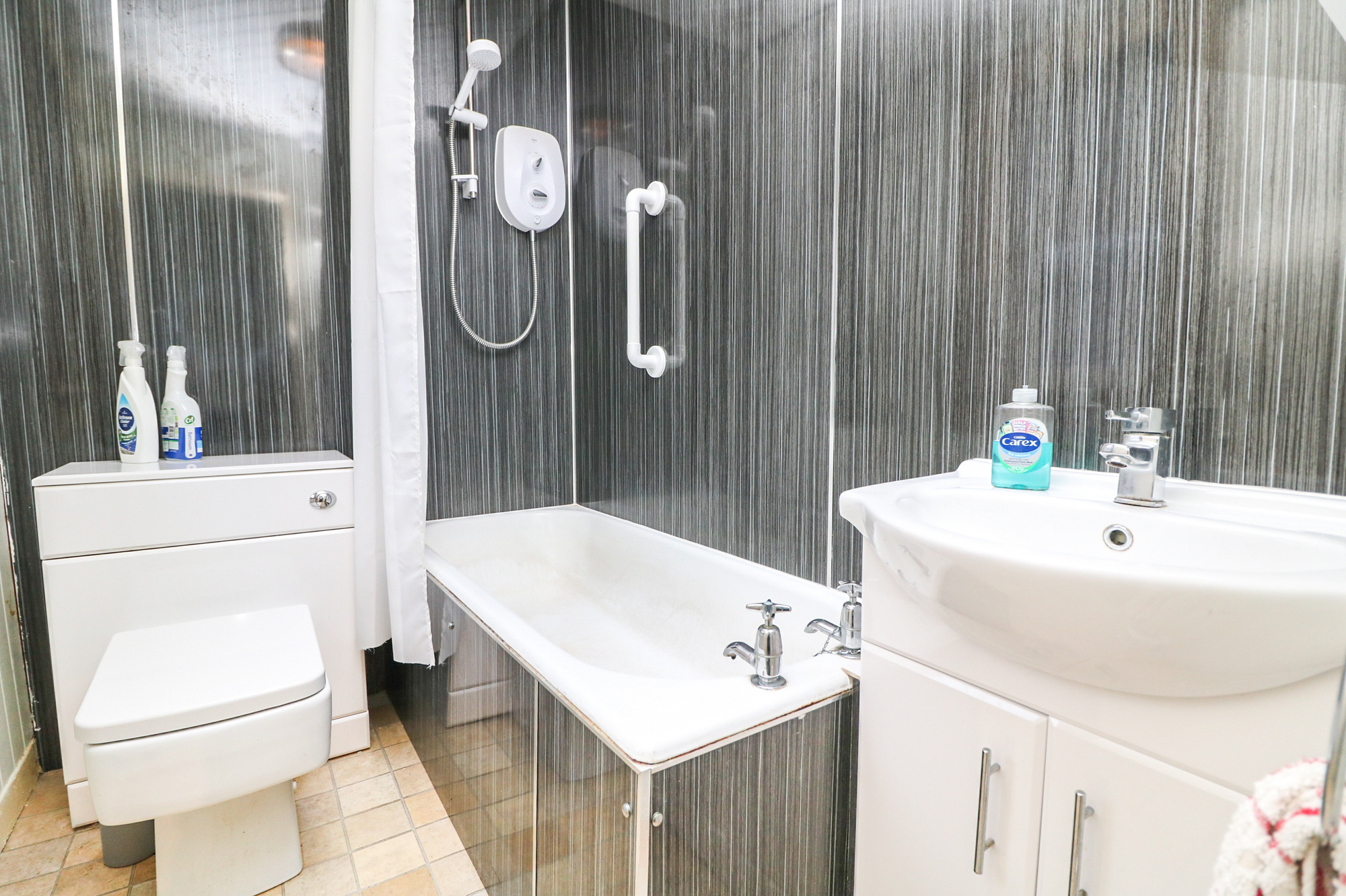 On the upper level are two generous double sized bedrooms and a fresh and spacious family bathroom with white three-piece bathroom suite and low-maintenance wall-panelling.