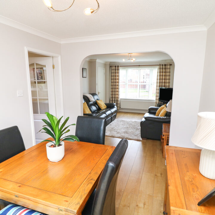 Offering versatile accommodation formed over two levels a welcoming hall leads to a well-proportioned lounge/dining room with ample space for freestanding furniture and patio doors leading to the rear garden. The kitchen is complete with a selection of beech base and wall mounted units, contrasting worktops, breakfast bar and integrated oven and hob. There is a useful utility area and WC completing the lower-level accommodation.