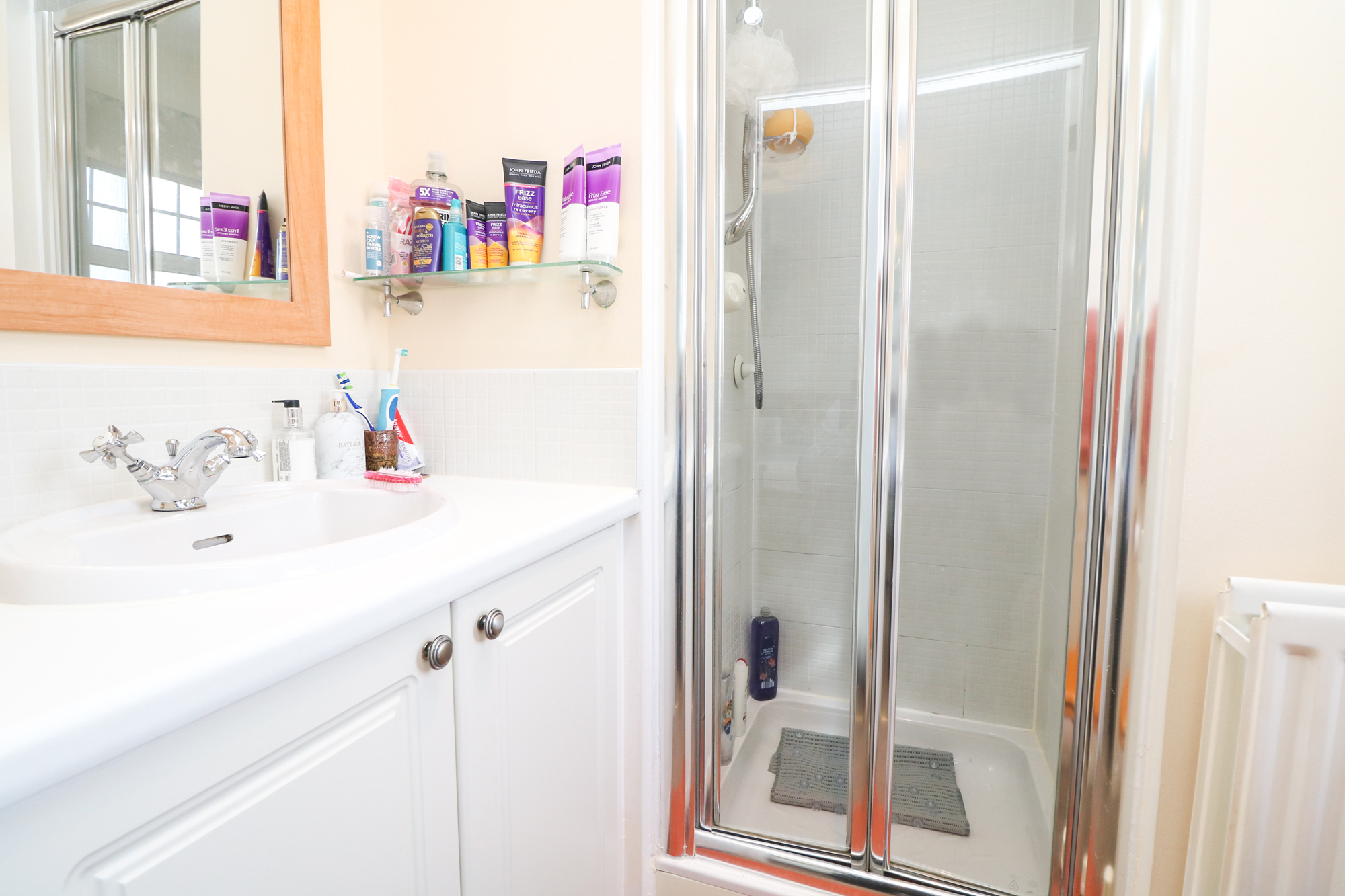 On the upper floor are three generous sized double bedrooms, two of which benefit from inbuilt mirror wardrobes and the principal bedroom from an en-suite shower room. Completing the accommodation on offer is a family bathroom with white suite and glass shower screen.