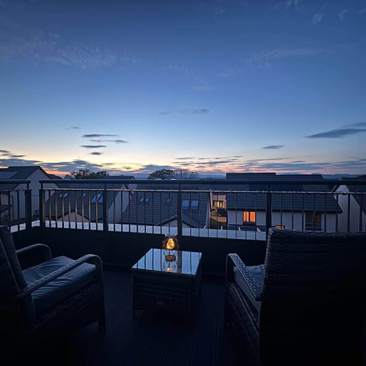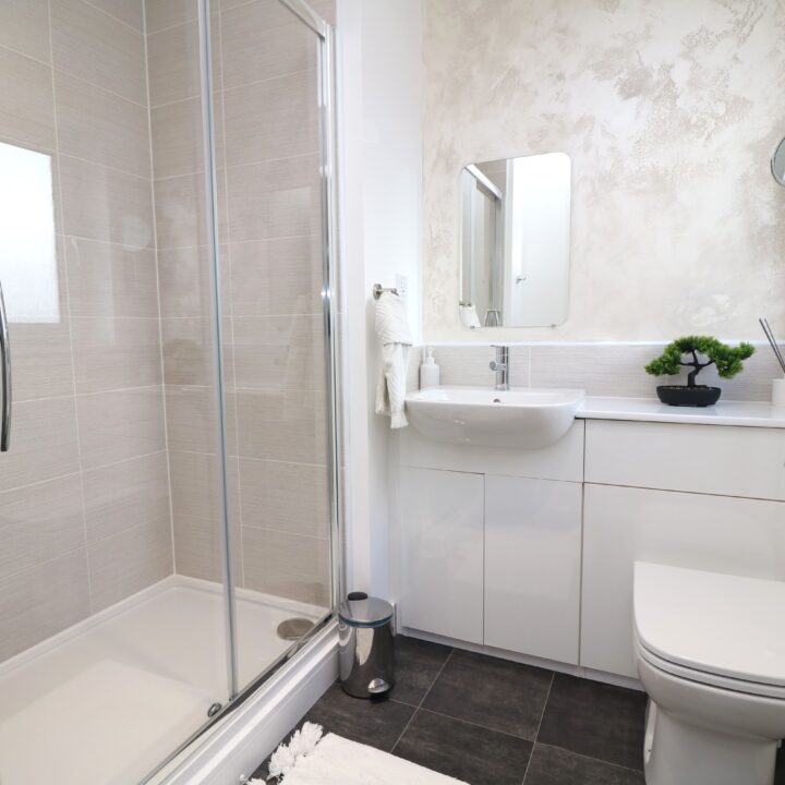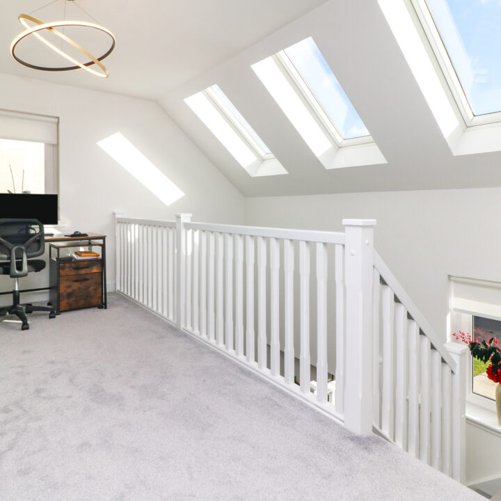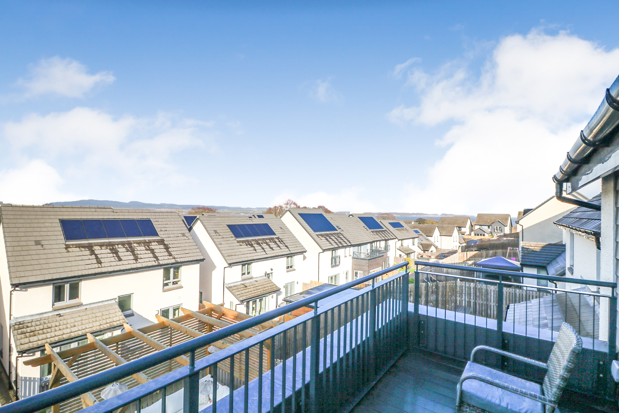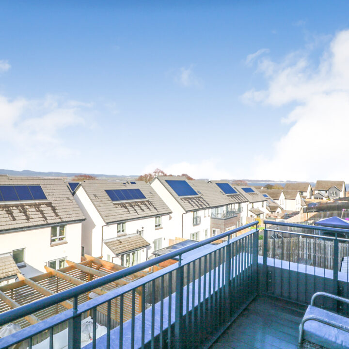 On the upper level the superb galleried landing with velux windows provide an array of natural flowing light and lead to four generous sized double bedrooms which all benefit from fitted robes. Both the principal bedroom and bedroom two further benefit from an en-suite shower room’s whilst also enjoying views towards the river Forth and beyond via a seated balcony area & Juliet balcony respectively. Completing the accommodation on offer is a wonderful family bathroom with separate shower cubicle & Sun Tunnel to provide natural light.